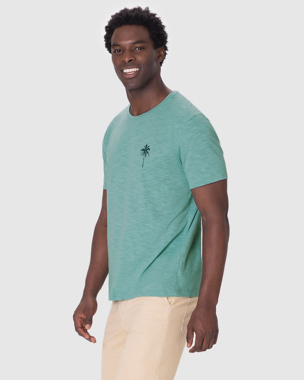 Camiseta Masculina Manga Curta Estampa Frontal Em Malha Flamê