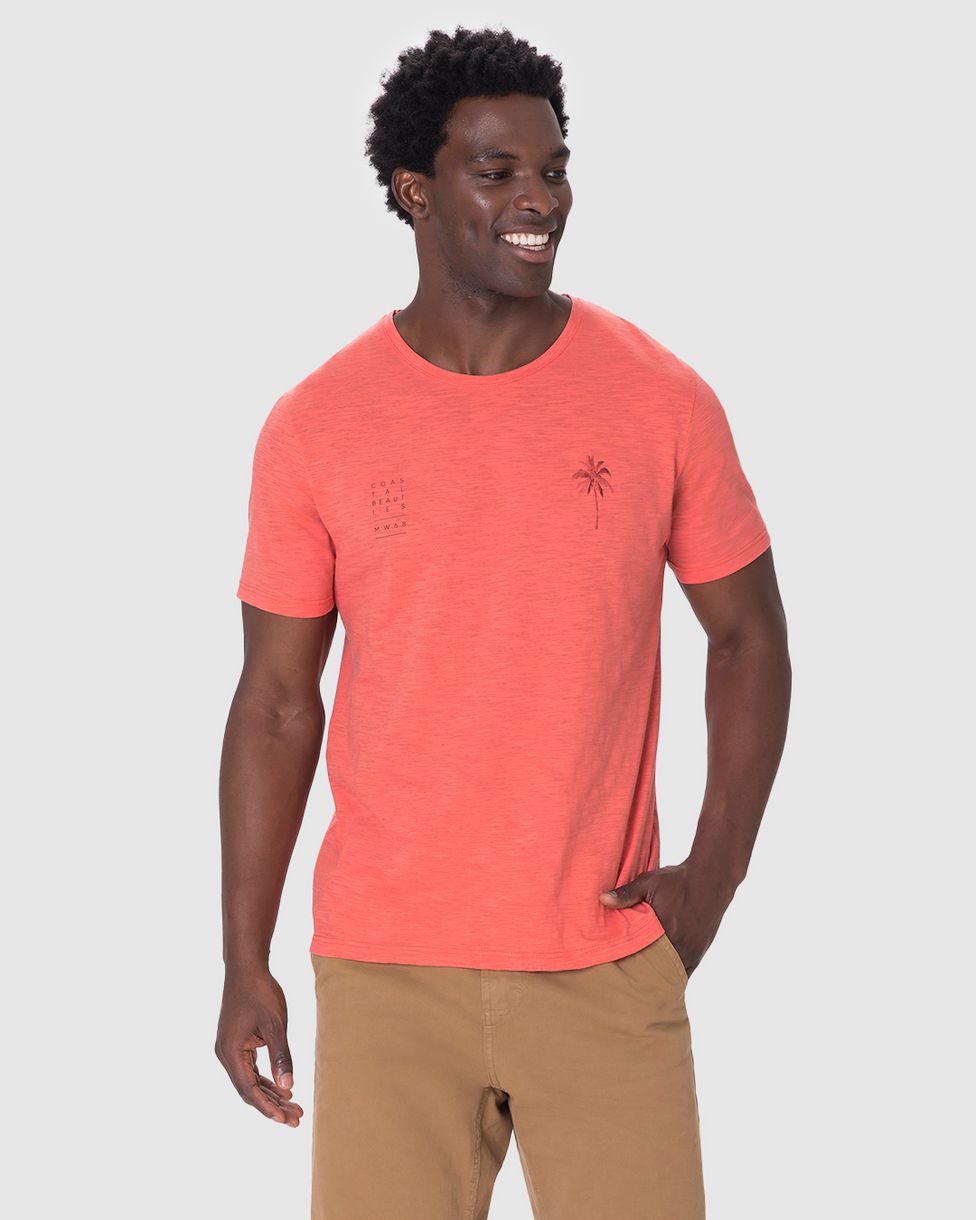 Camiseta Masculina Manga Curta Estampa Frontal Em Malha Flamê Laranja - G