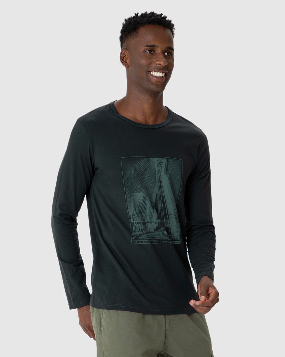 Camiseta Masculina Manga Longa Com Estampa Frontal Em Algodão