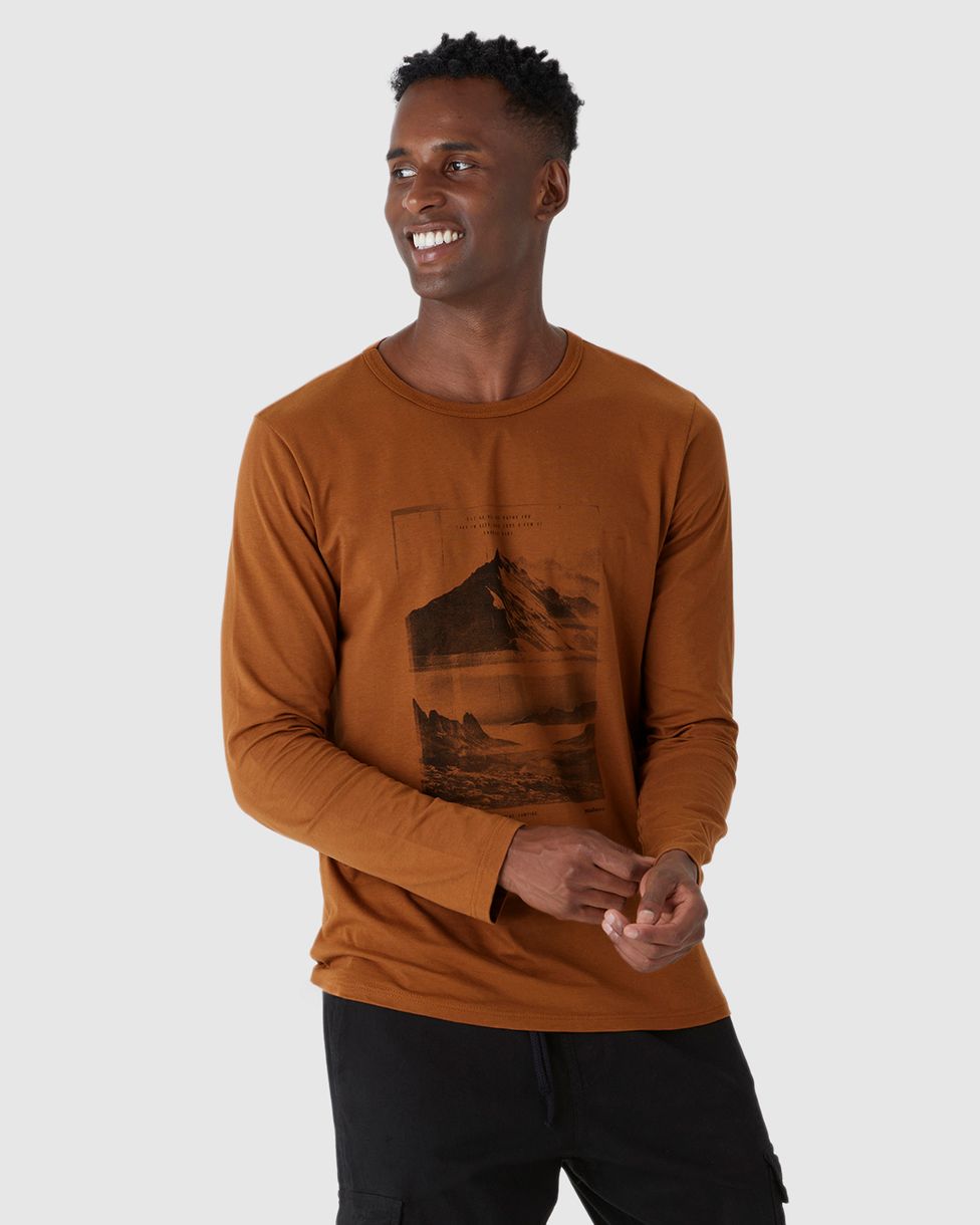 Camiseta Masculina Manga Longa Com Estampa Frontal Em Algodão