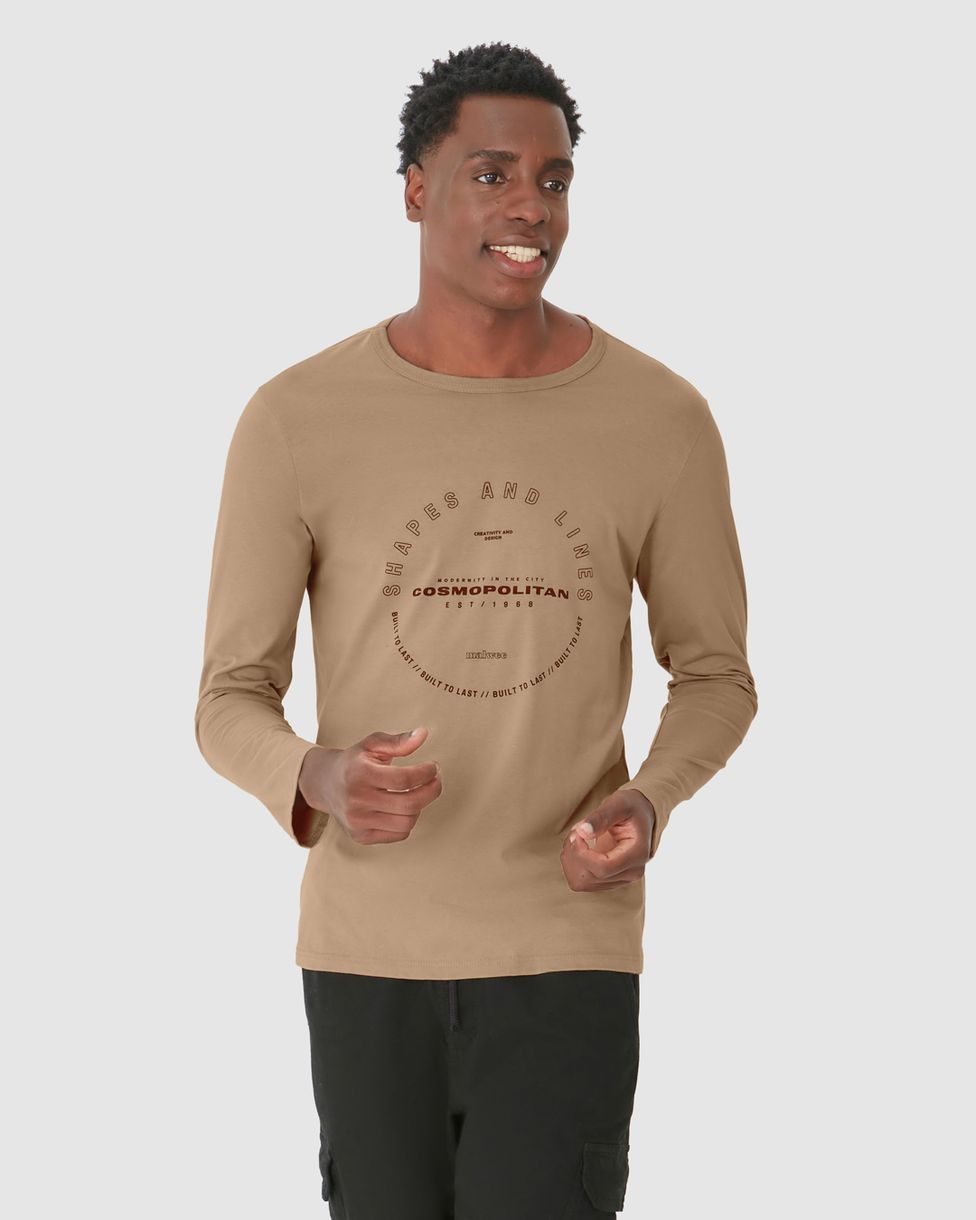Camiseta Masculina Manga Longa Com Estampa Frontal Em Algodão