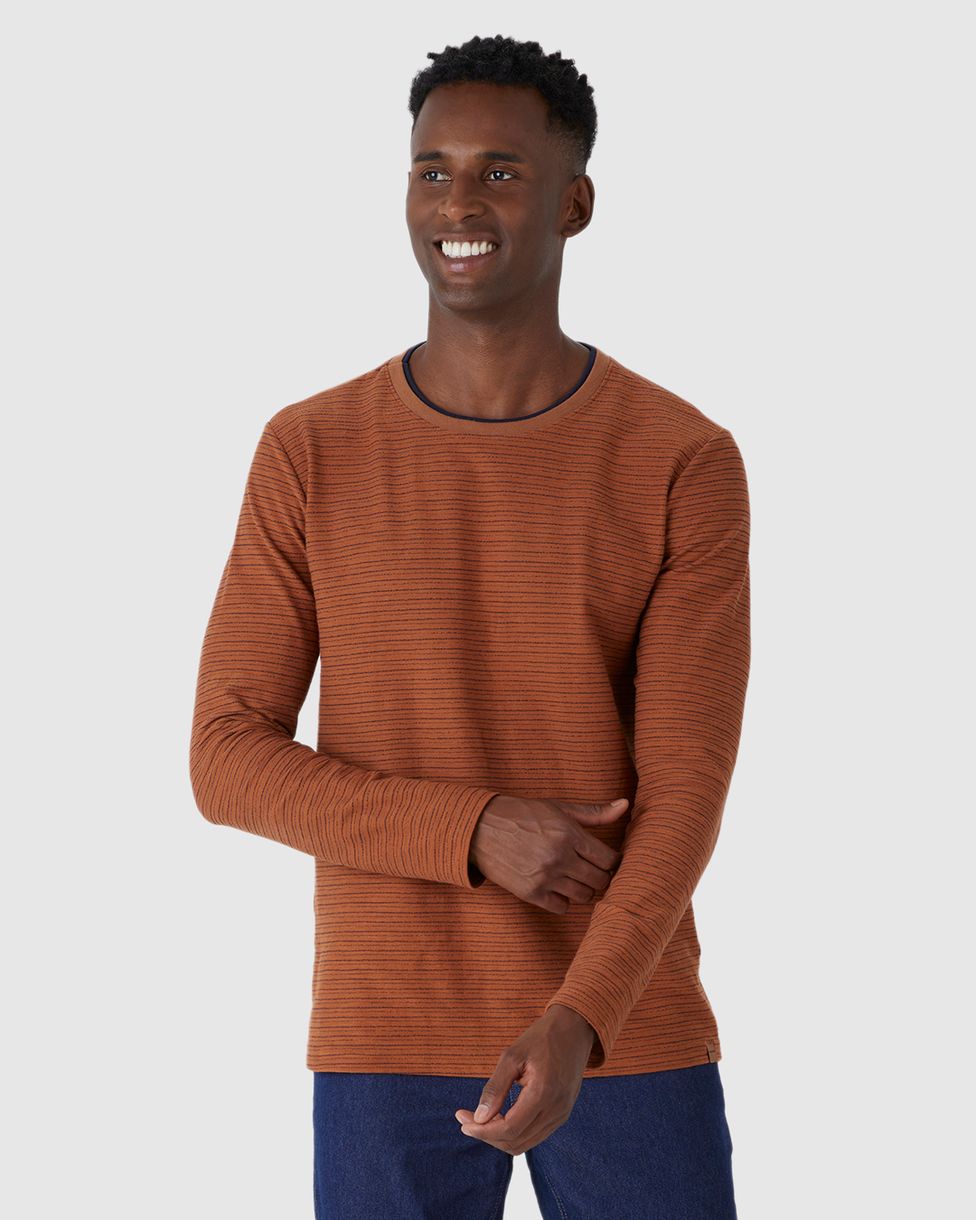 Camiseta Masculina Manga Longa Em Malha Texturizada Listrada