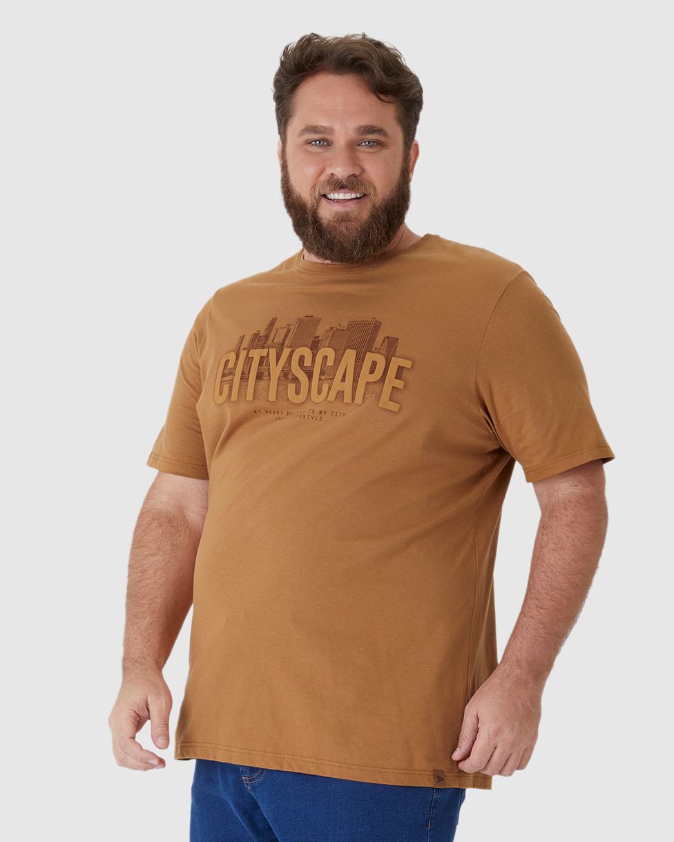 Camiseta Masculina Plus Size Cityscape Em Malha Algodão Comfy