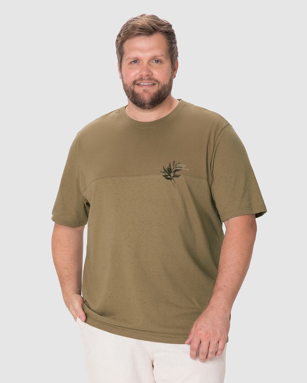 Camiseta Masculina Plus Size Detalhe Recorte Em Malha Botonê
