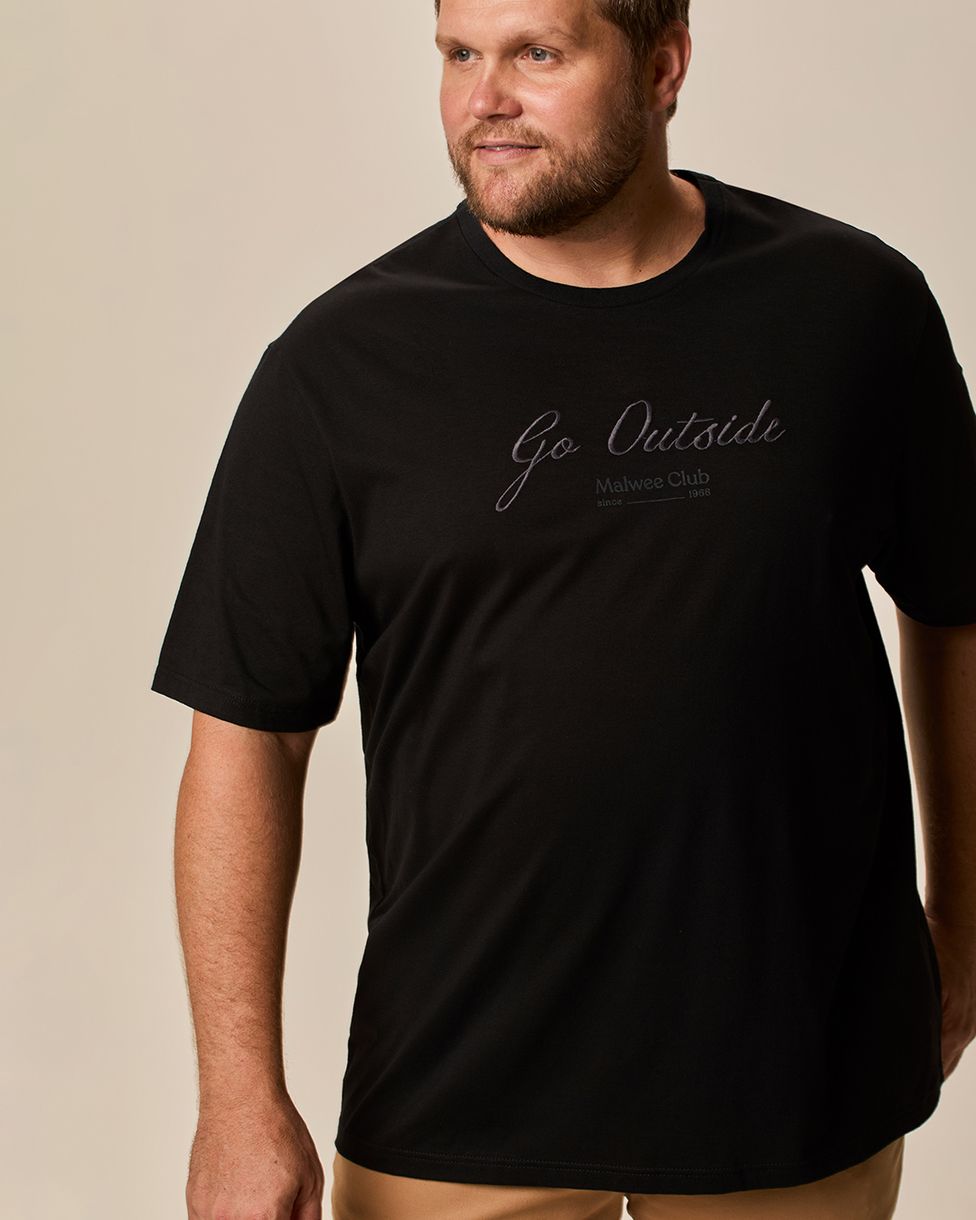 Camiseta Masculina Plus Size Estampa + Bordado Go Outside Em Algodão Preto - G3