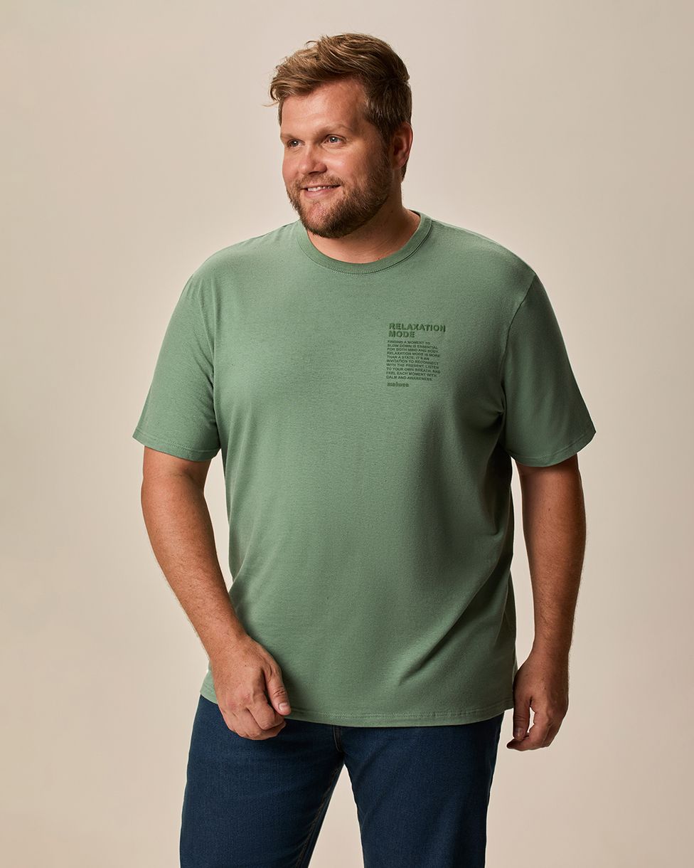 A Camiseta Masculina Plus Size em malha linho traz conforto e estilo com estampa lettering em puff, que agrega textura e modernidade ao visual. Perfeita para quem busca praticidade sem abrir mão da elegância casual no dia a dia.