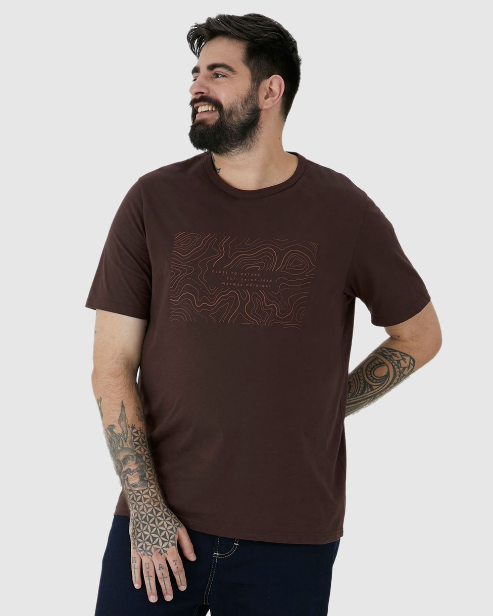 Camiseta Masculina Plus Size Manga Curta Estampa Frontal Em Algodão