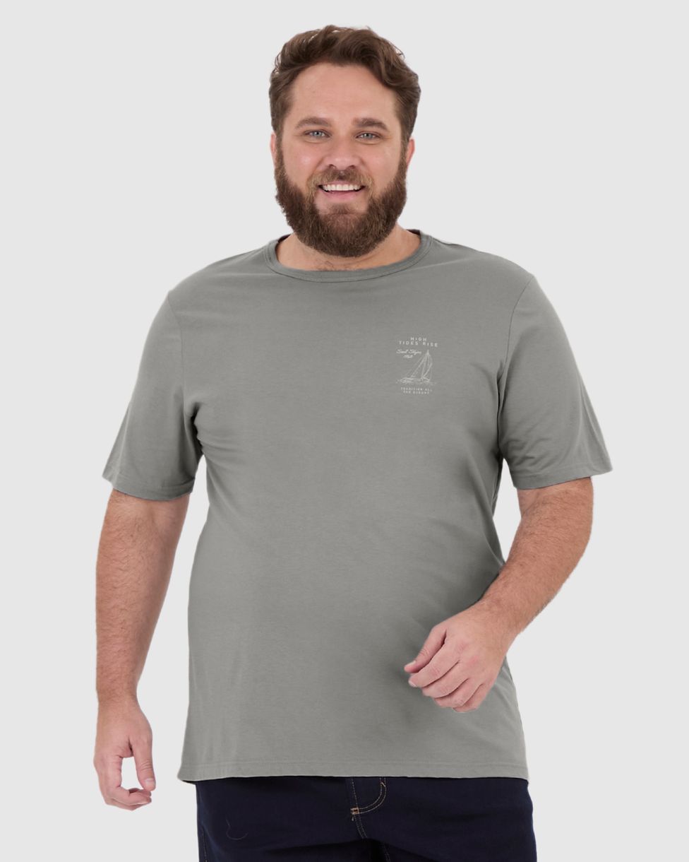 Camiseta Masculina Plus Size Manga Curta Estampa Frontal Em Algodão