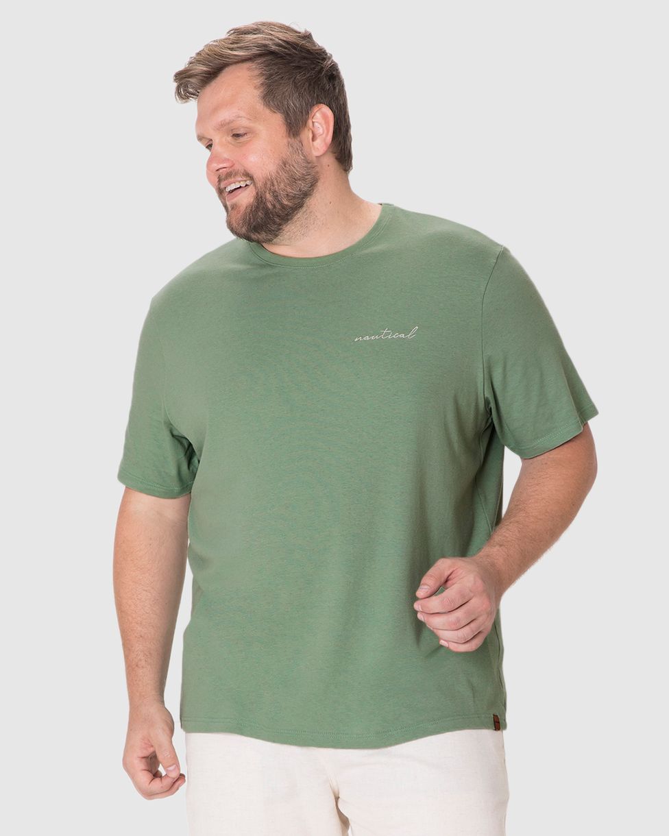 Camiseta Masculina Plus Size Nautical Estampa Frente E Costas Em Malha Linho Verde - G1