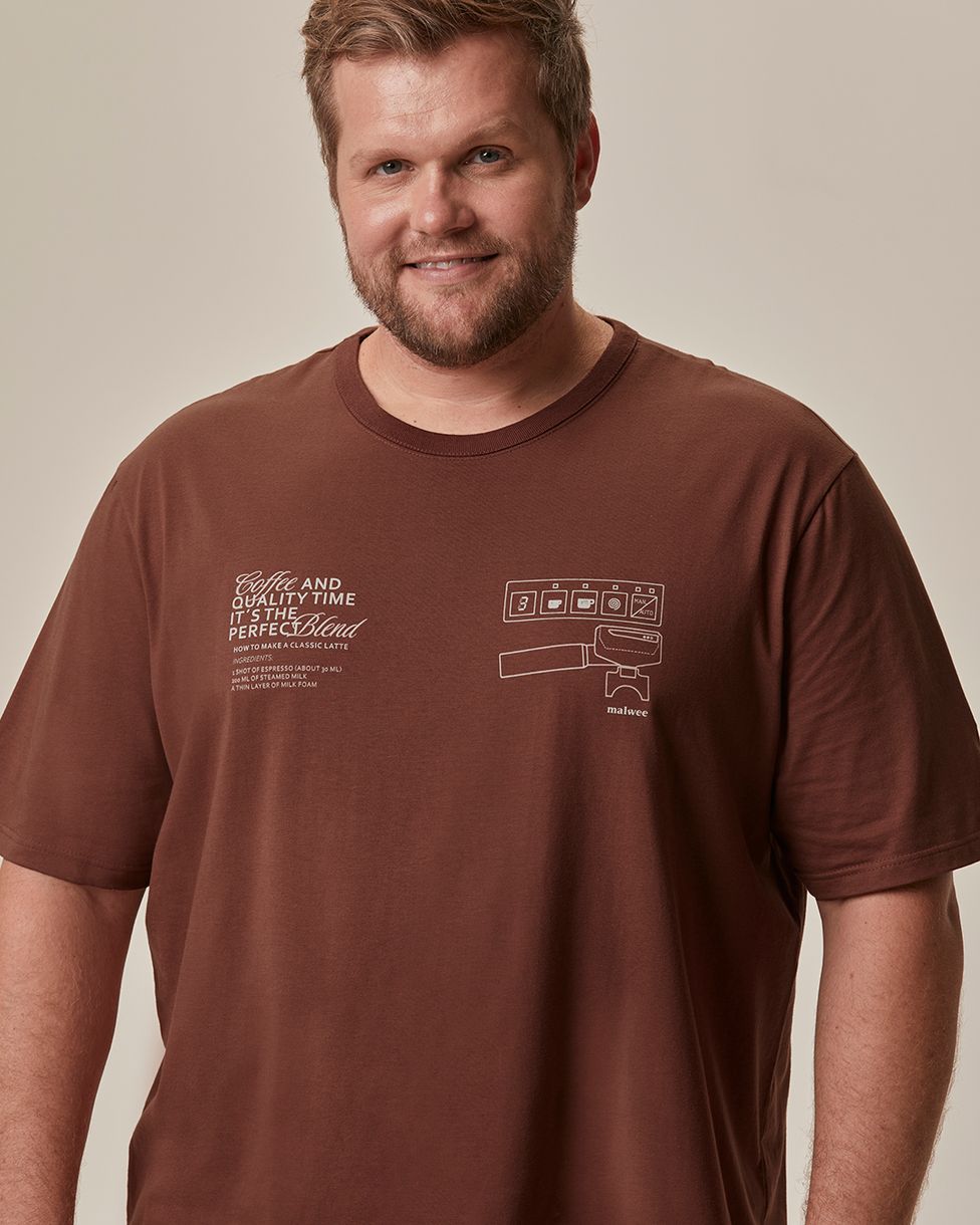 Camiseta Masculina Plus Size Regular Manga Curta Estampada Em Algodão