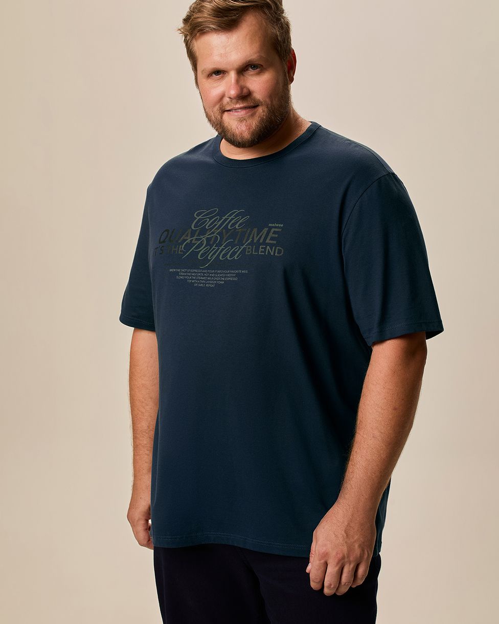 Camiseta Masculina Plus Size Regular Manga Curta Estampada Em Algodão