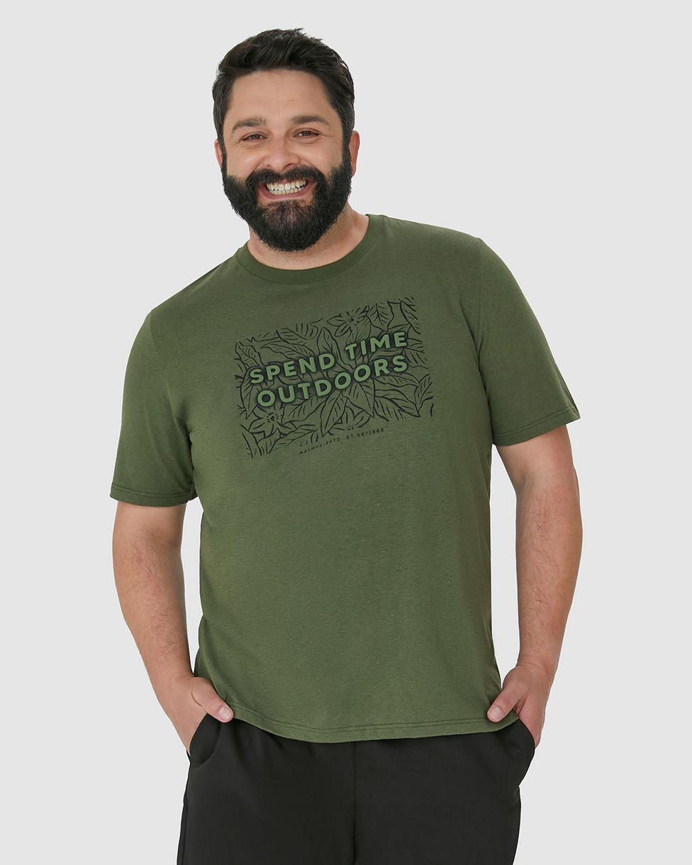 Camiseta Masculina Plus Size Spend Time Outdoors Em Malha Linho