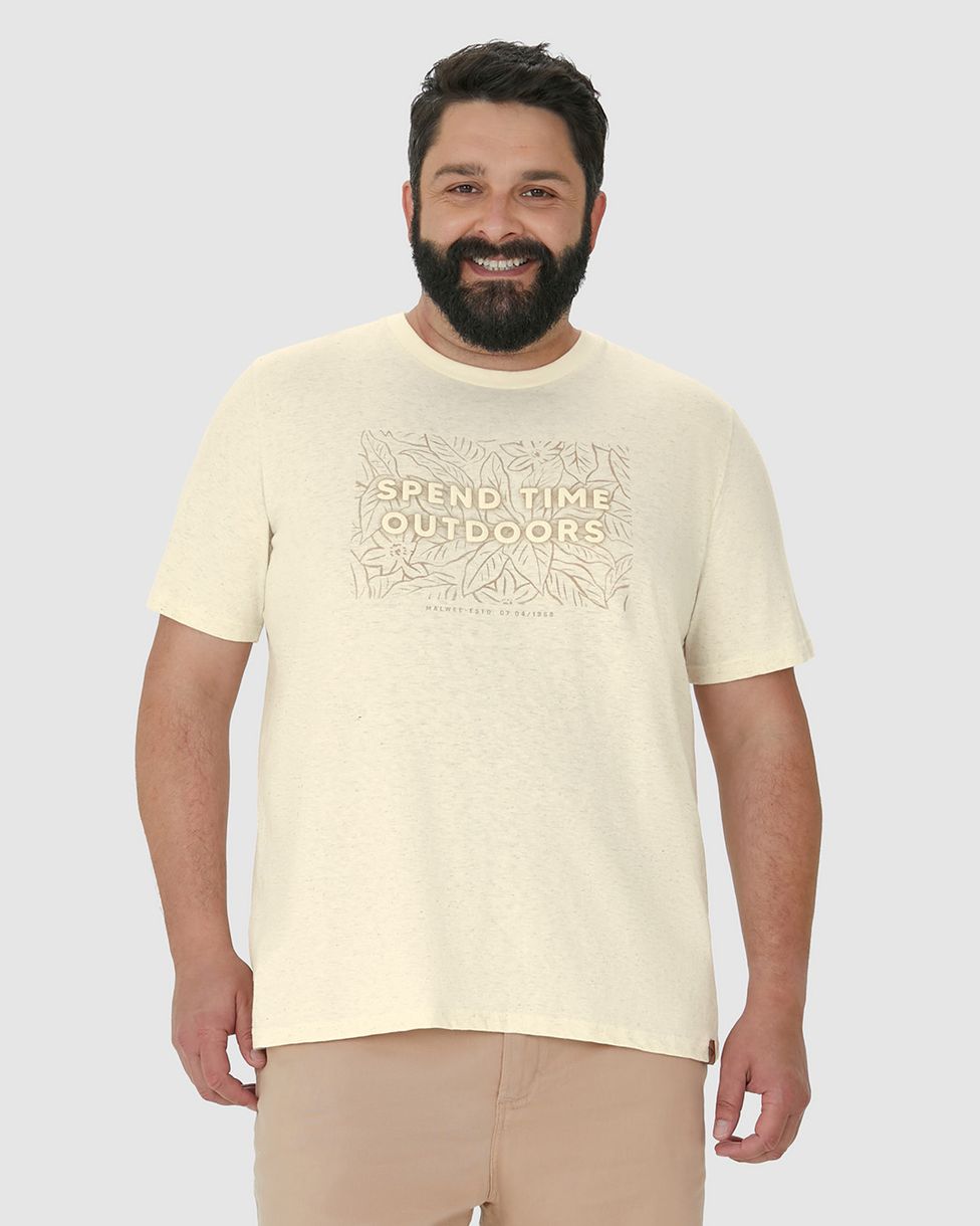 Camiseta Masculina Plus Size Spend Time Outdoors Em Malha Linho