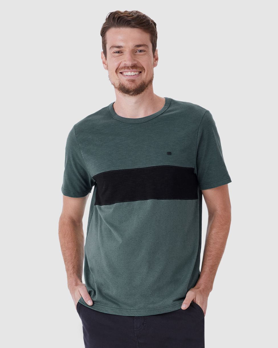 Camiseta Masculina Regular Detalhe Estampa Bicolor Em Malha Flamê Verde - G