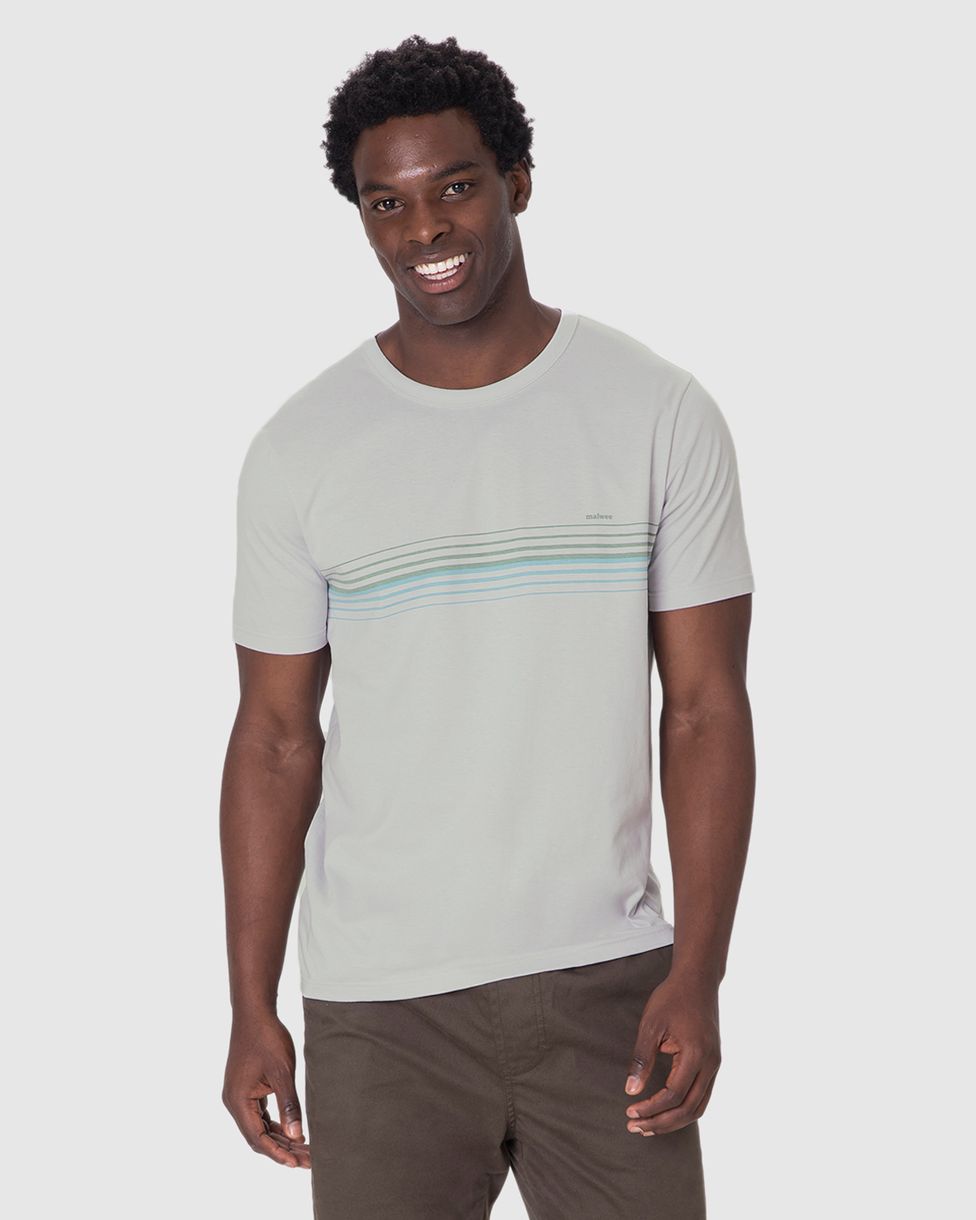 Camiseta Masculina Regular Estampa Listras Frontais Em Algodão