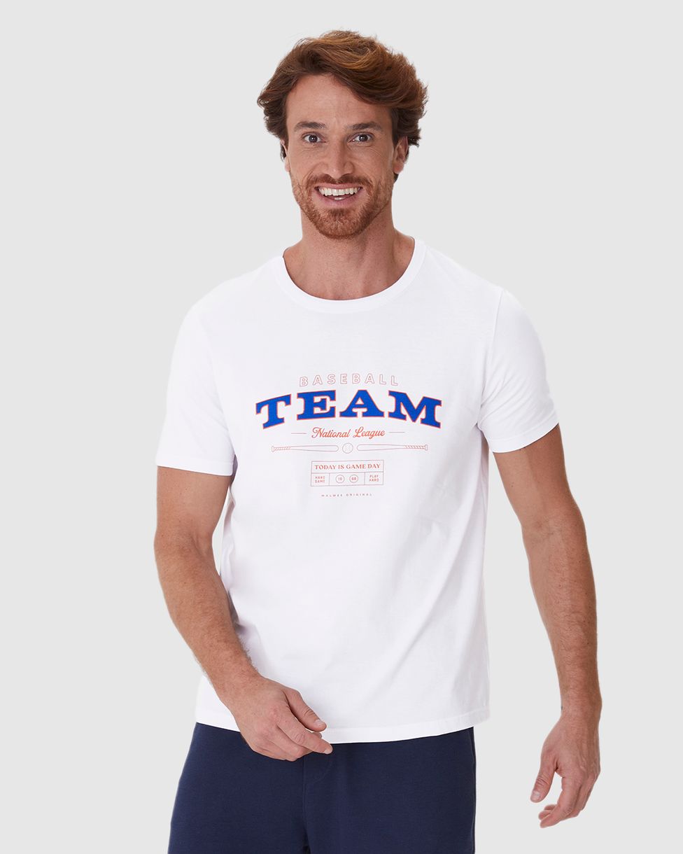 Camiseta Masculina Regular Estampada Em Algodão Branco - G