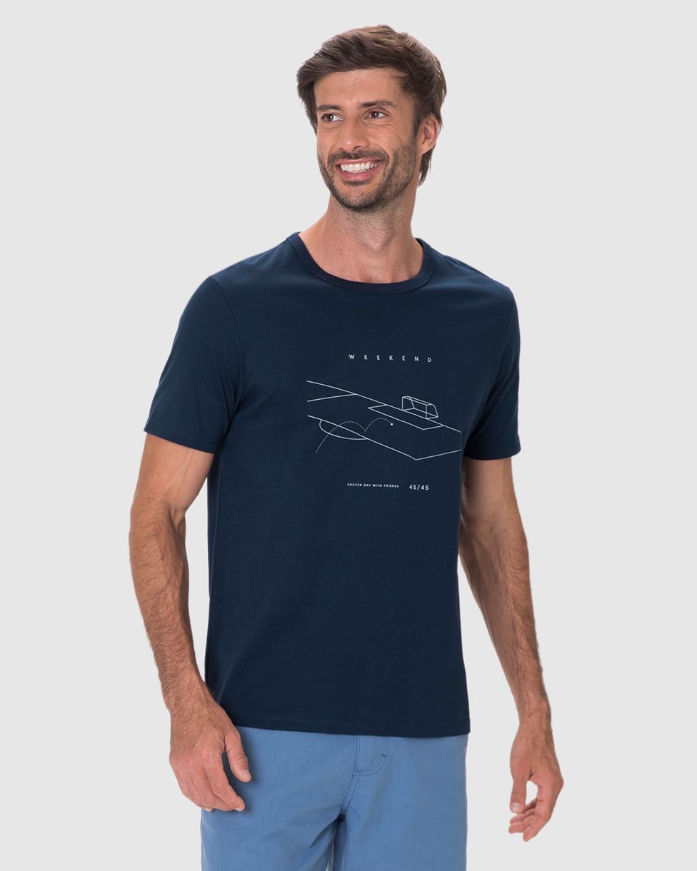 Camiseta Masculina Regular Estampada Em Algodão Azul - GG