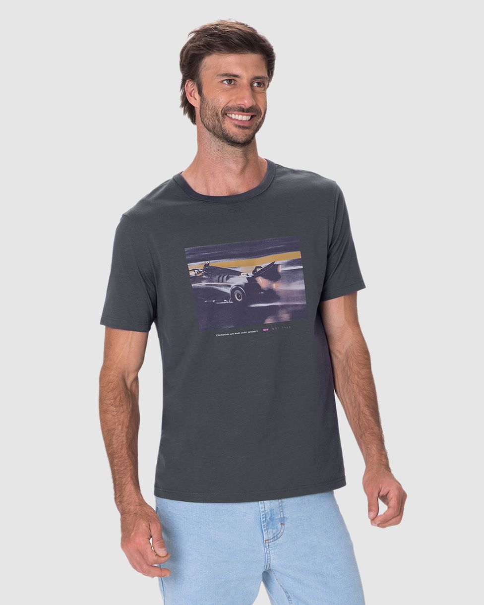 Camiseta Masculina Regular Estampada Em Algodão Cinza - G