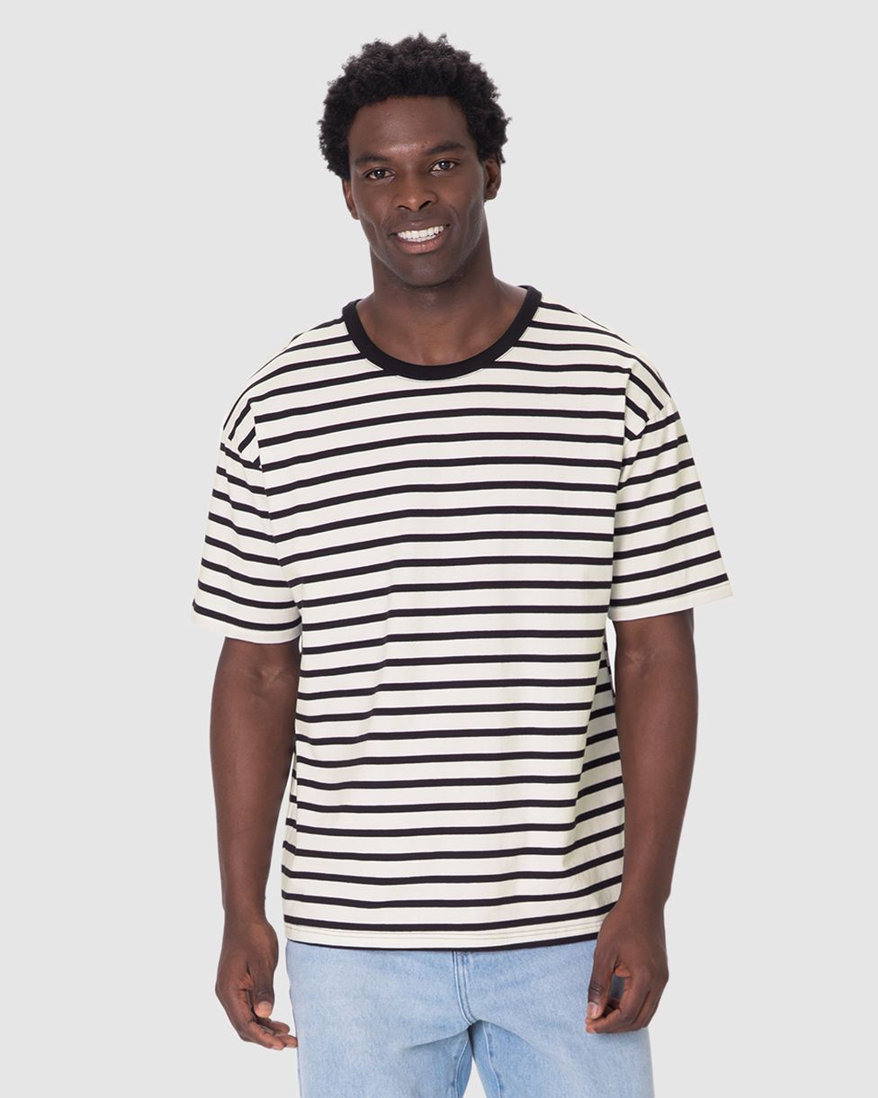 Camiseta Masculina Regular Listrada Manga Curta Em Algodão