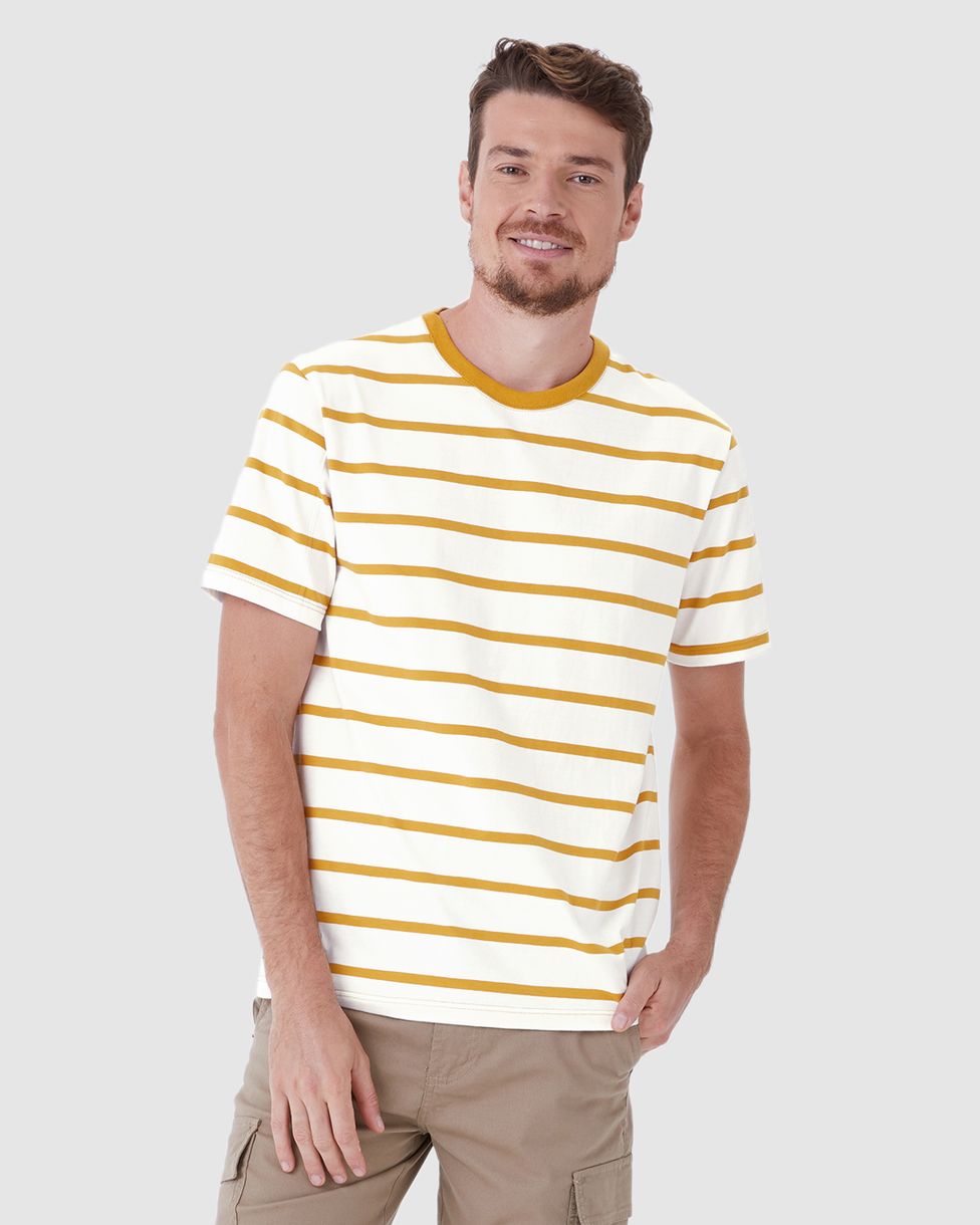 Camiseta Masculina Regular Listrada Manga Curta Em Algodão
