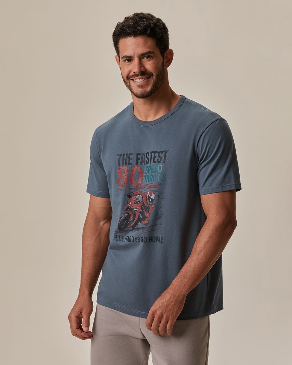 Camiseta Masculina Regular Manga Curta Estampa Frontal Em Algodão
