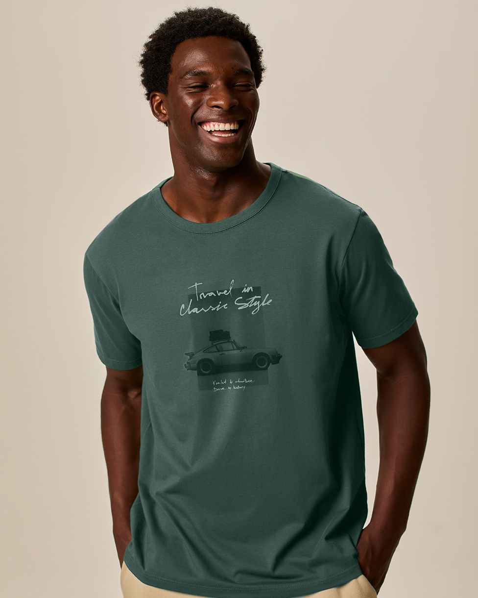 Camiseta Masculina Regular Manga Curta Estampa Frontal Em Algodão