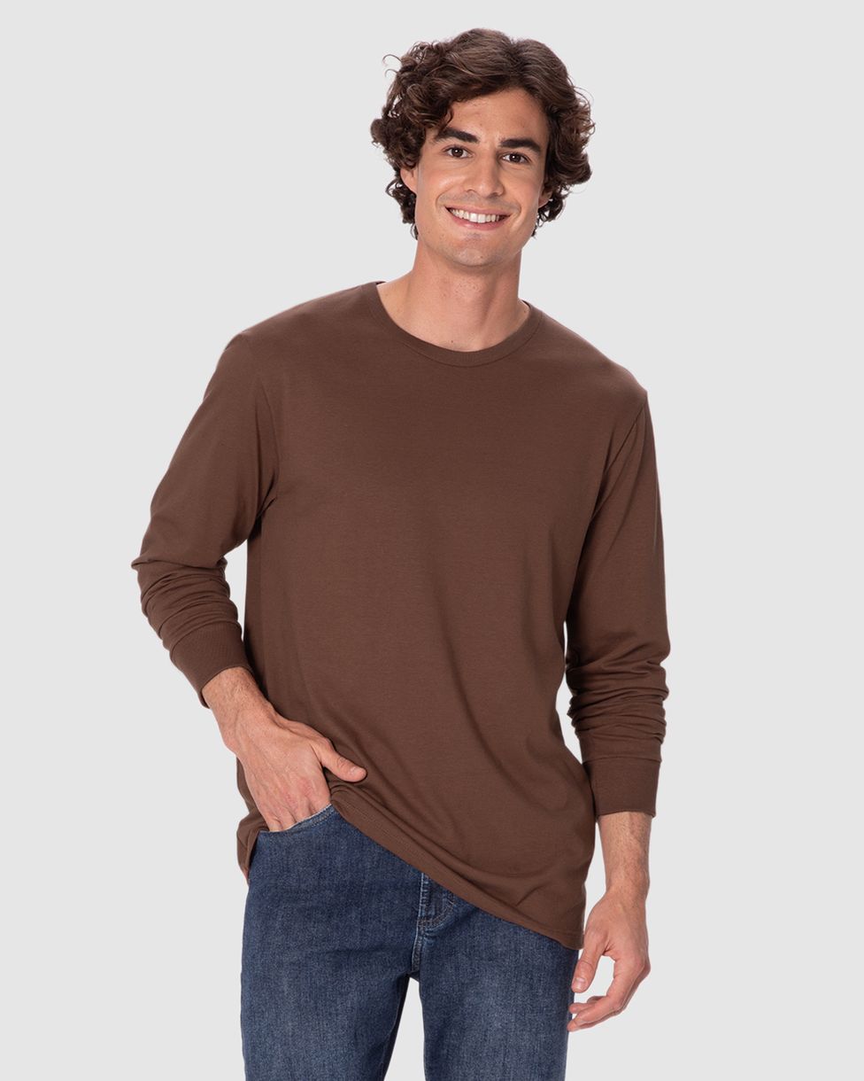 Camiseta Masculina Regular Manga Longa Em Malha Comfy Touch Marrom - XGG