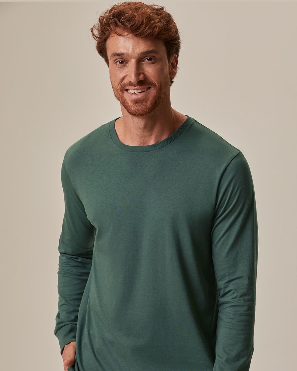 Camiseta Masculina Regular Manga Longa Em Malha Comfy Touch Verde - XGG