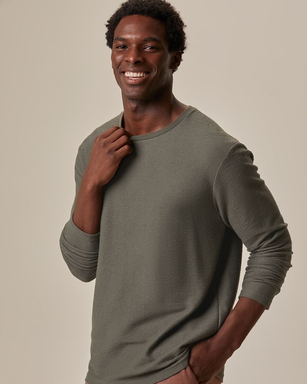 Camiseta Masculina Regular Manga Longa Etiqueta Decorativa Em Malha Texturizada Verde - P