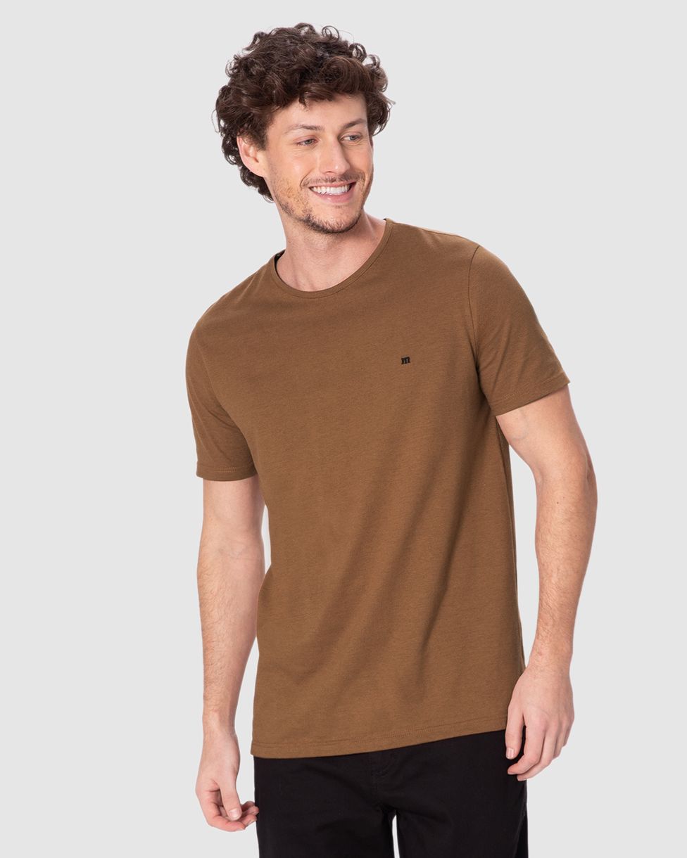 Camiseta Masculina Slim Bordado Abertura Lateral Em Malha Texturizada Marrom - XGG