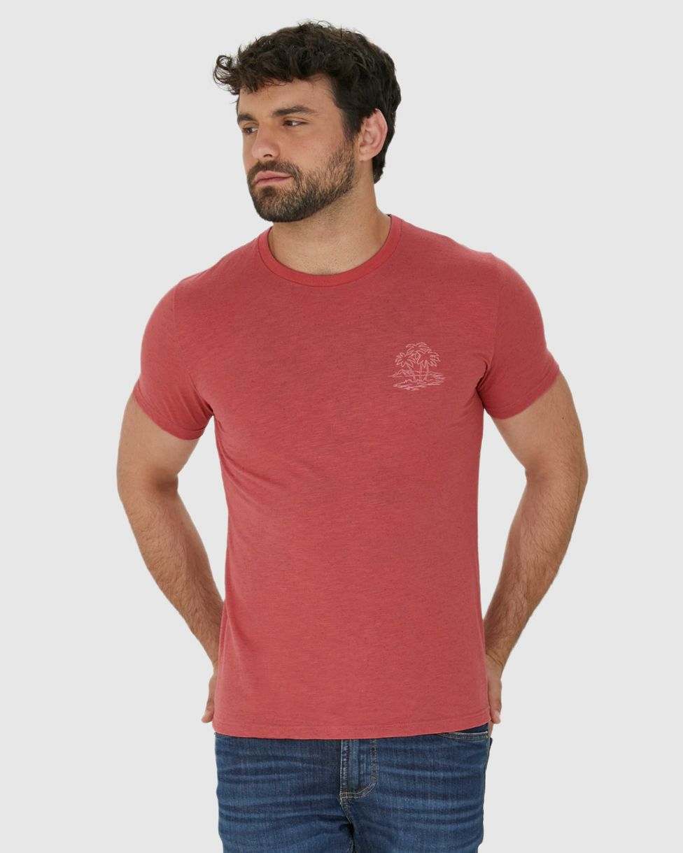 Camiseta Masculina Slim Estampa Frente E Costas Em Malha Rajada Linho