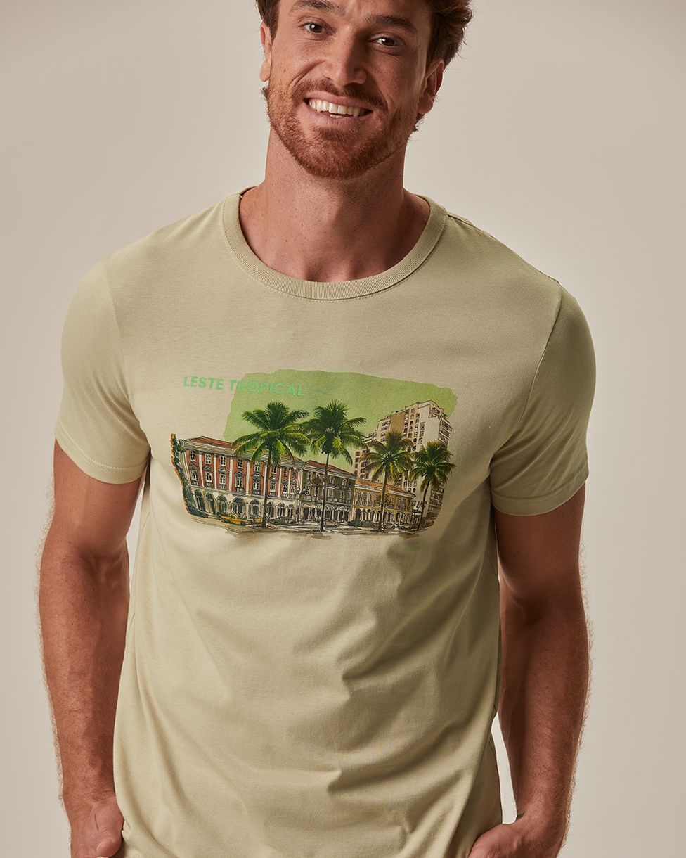 Camiseta Masculina Slim Gola Redonda Manga Curta Estampada Em Algodão