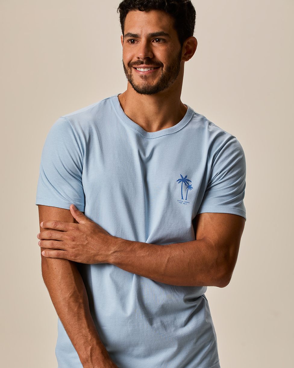 Camiseta Masculina Slim Gola Redonda Manga Curta Estampada Em Algodão
