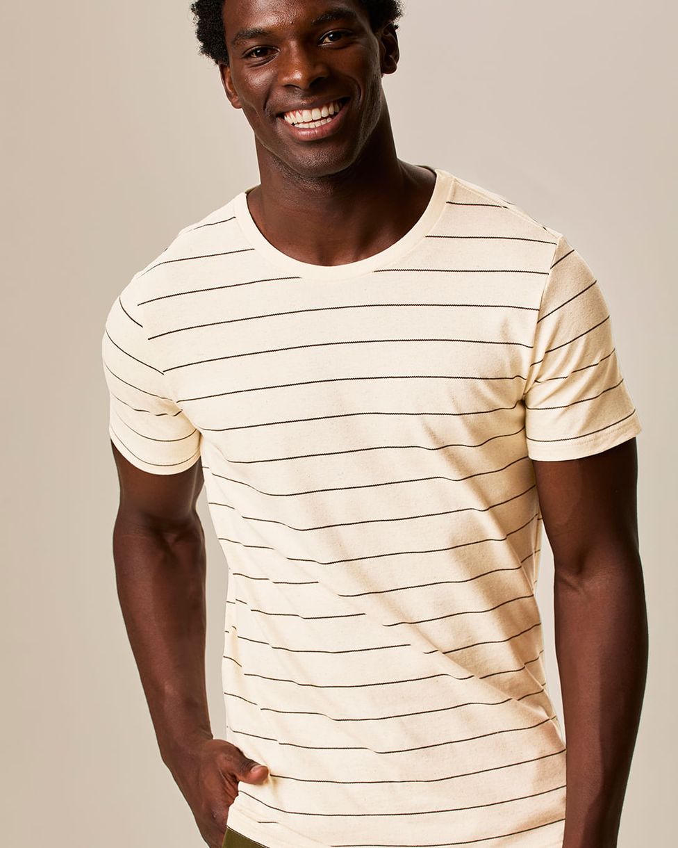 Camiseta Masculina Slim Listrada Manga Curta Em Piquet Linho Off White - P