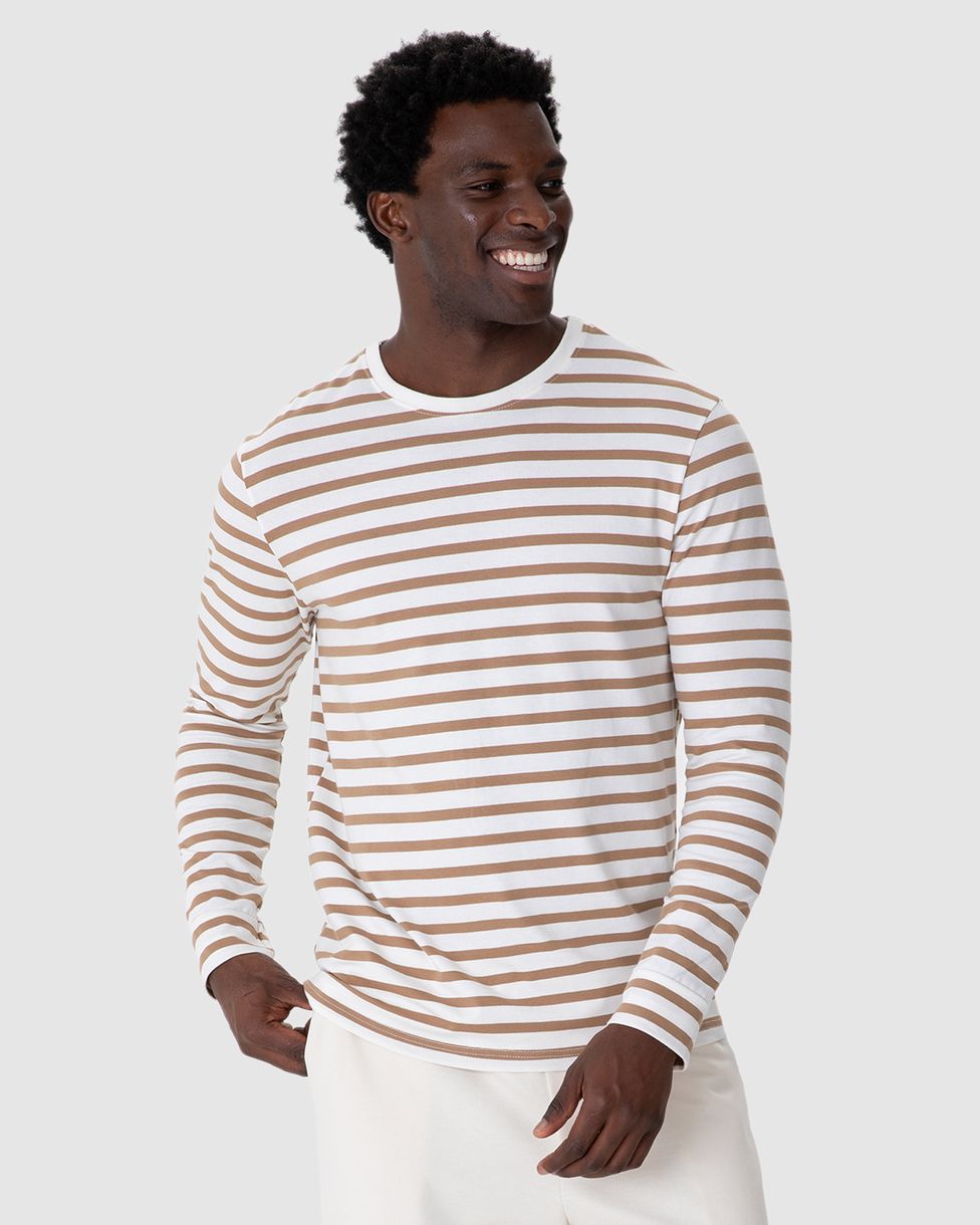 Camiseta Masculina Slim Listrada Manga Longa Em Algodão
