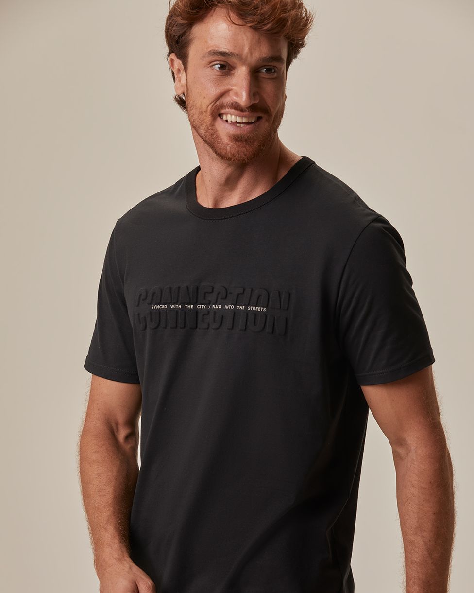 Camiseta Masculina Slim Manga Curta Estampa Connection Alto Relevo Em Algodão Preto - XGG