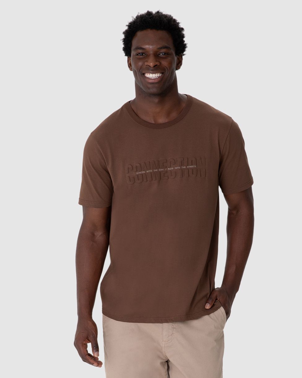Camiseta Masculina Slim Manga Curta Estampa Connection Alto Relevo Em Algodão Marrom - XGG