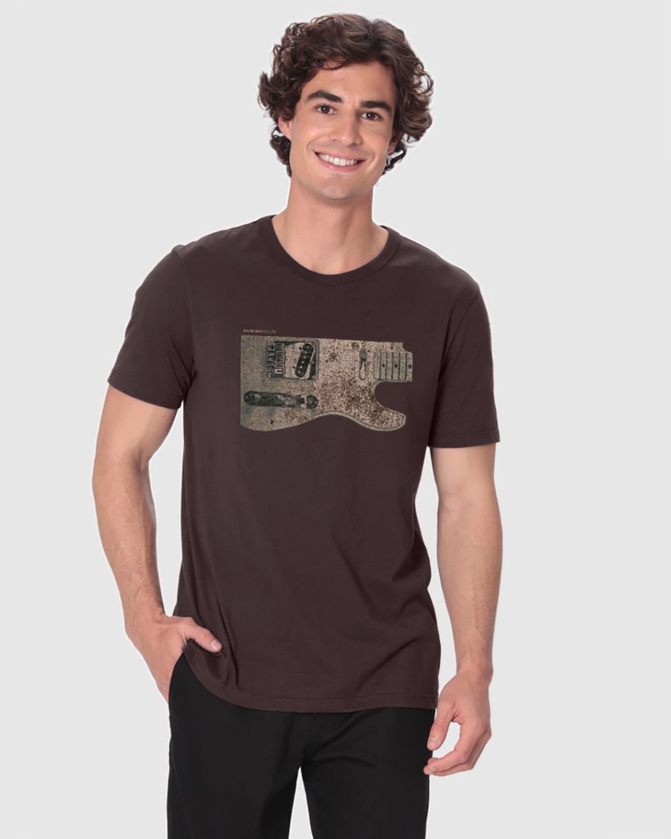 Camiseta Masculina Slim Manga Curta Estampa Frontal Em Algodão Marrom - XGG