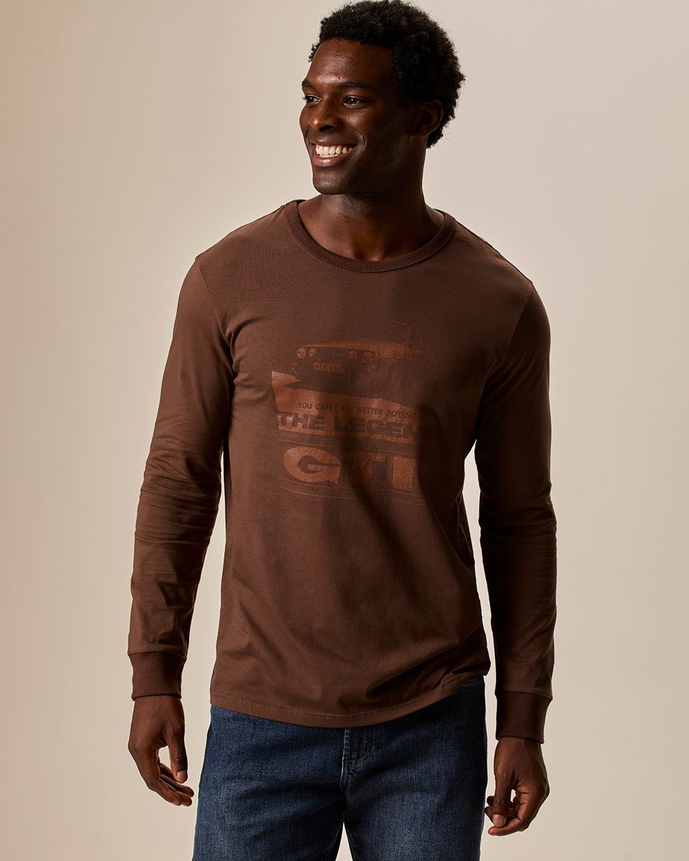MasculinoCamisetasCamisetas Manga LongaCamiseta Masculina Slim Manga Longa Estampa Frontal Em Algodão