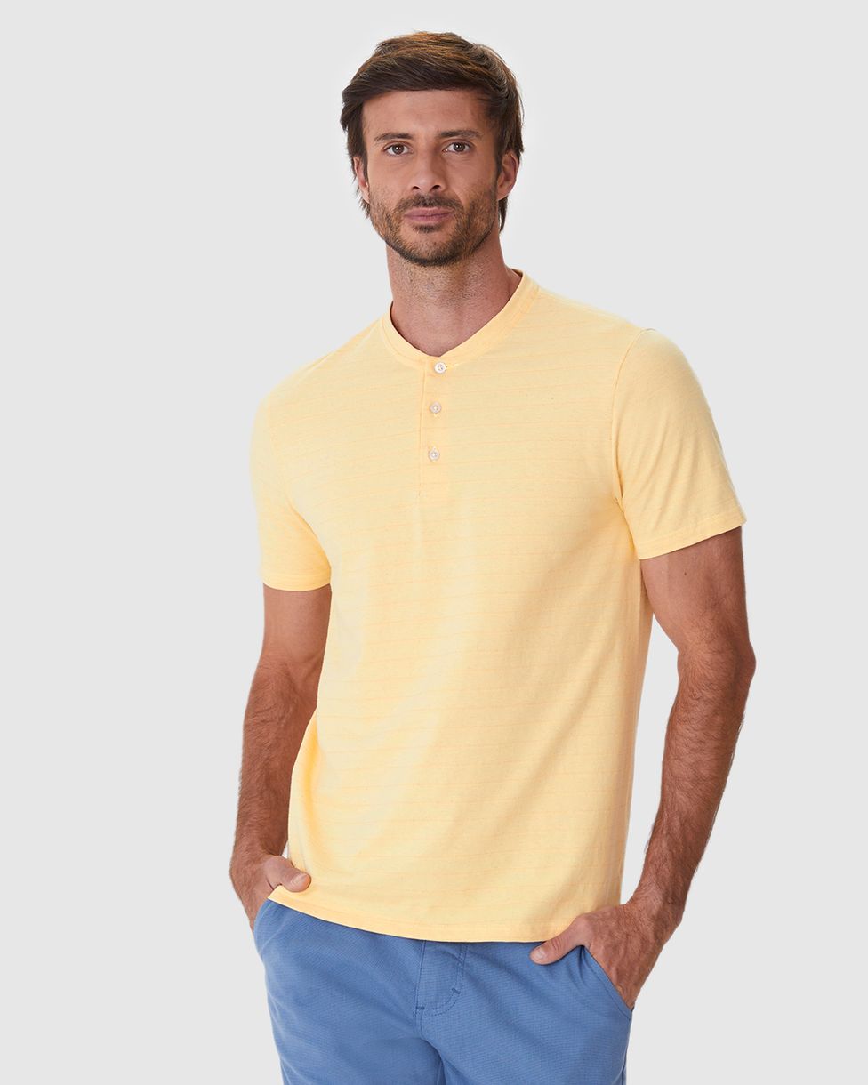 Camiseta Masculina Slim Peitilho Frontal Em Malha Linho Texturizada Amarelo - G