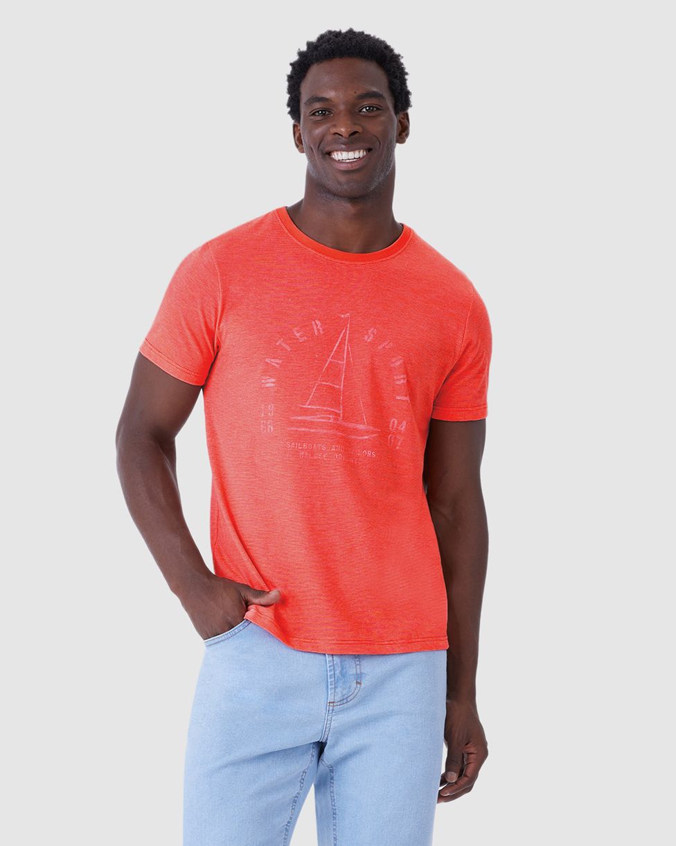 Camiseta Masculina Slim Sailboats And Sailors Em Malha Fio A Fio Laranja - G