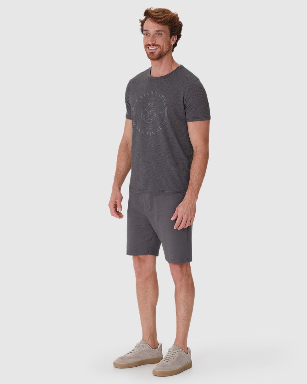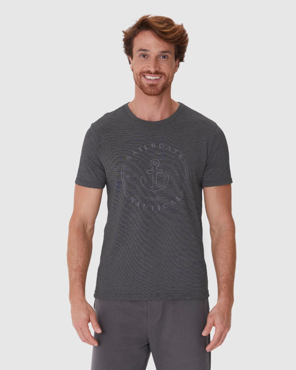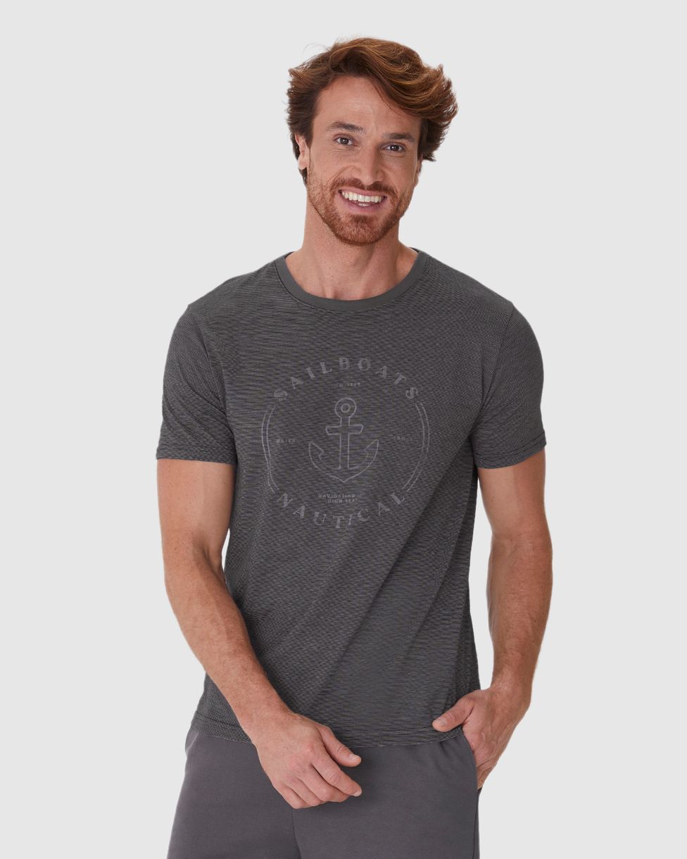 Camiseta Masculina Slim Sailboats Nautical Em Malha Fio A Fio Cinza - GG