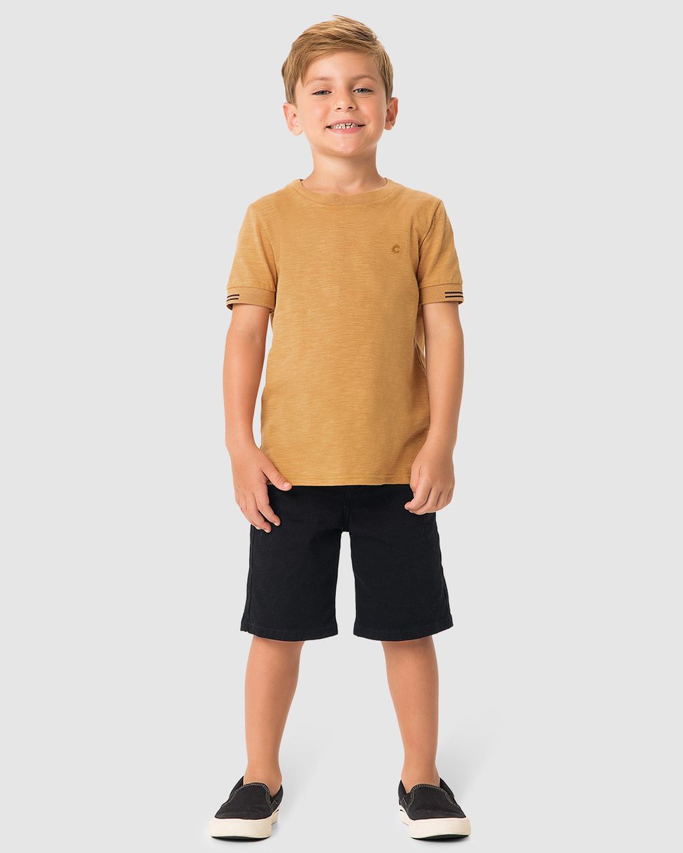 Camiseta Menino Bordado Peitoral Em Malha Rajada - Carinhoso: Perfeita para unir conforto e estilo, essa camiseta é confeccionada em malha rajada, trazendo um visual moderno. O bordado peitoral adiciona charme à peça, tornando-a versátil para diversas ocasiões, seja no dia a dia ou em momentos especiais.