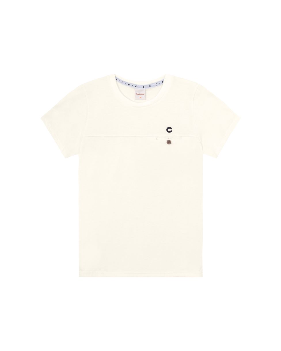 • Camiseta confeccionada em meia malha. Um modelo básico para acompanhar as crianças no dia a dia, essa peça possui decote redondo com detalhe de viés interno, mangas curtas, recorte e detalhe em botão no peitoral. Além disso, a meia malha é um tecido que tem bom caimento, durabilidade e proporciona leveza e frescor ao vestir. Combine com bermuda Carinhoso e tênis!