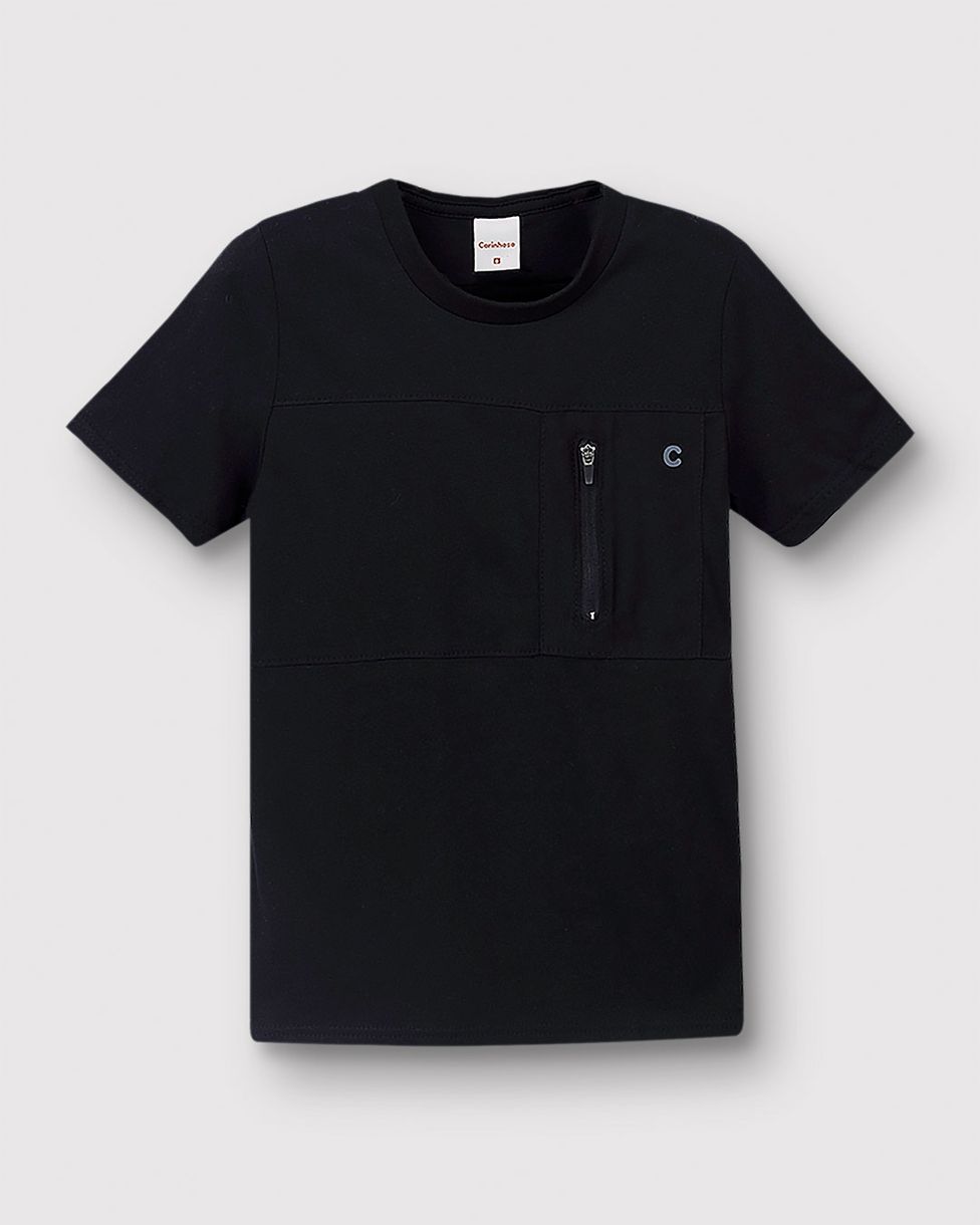 Camiseta Menino Detalhe Bolso Fecho Zíper Em Algodão - Carinhoso