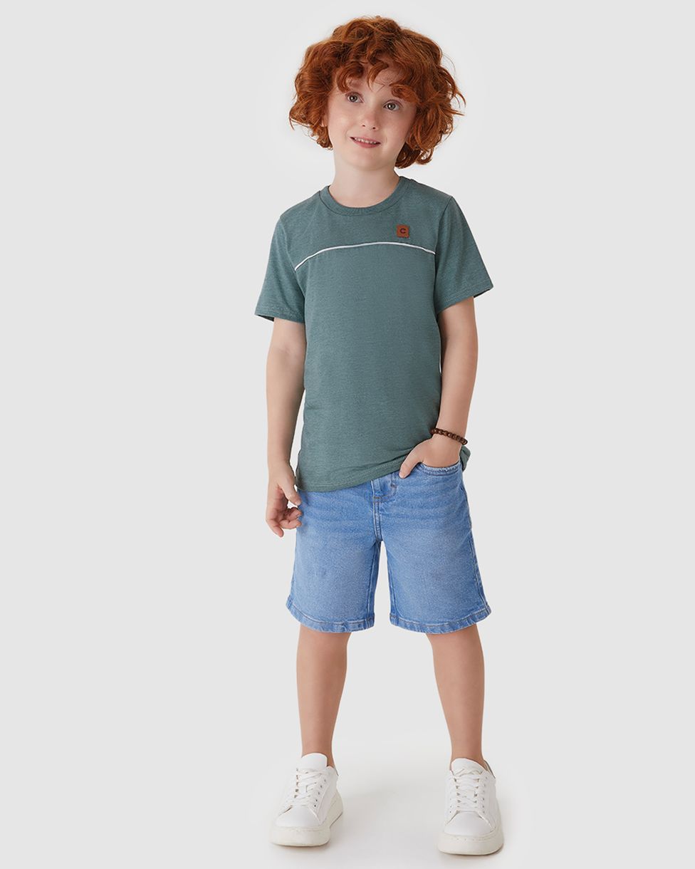 Camiseta Menino Detalhe Etiqueta Decorativa Em Malha Mesclada - Carinhoso Verde - 10