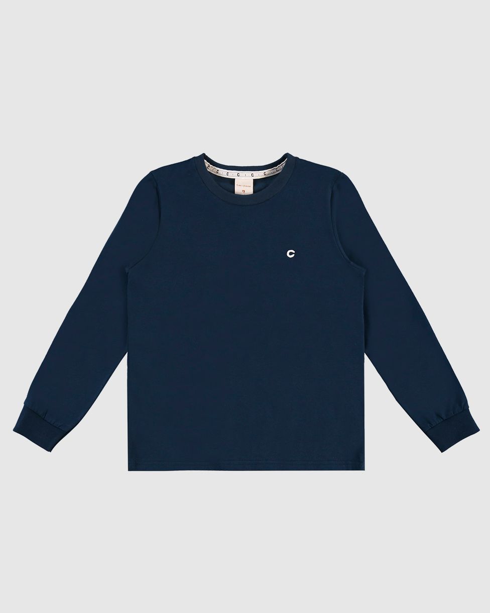 Camiseta Menino Gola Redonda Manga Longa Em Algodão - Carinhoso