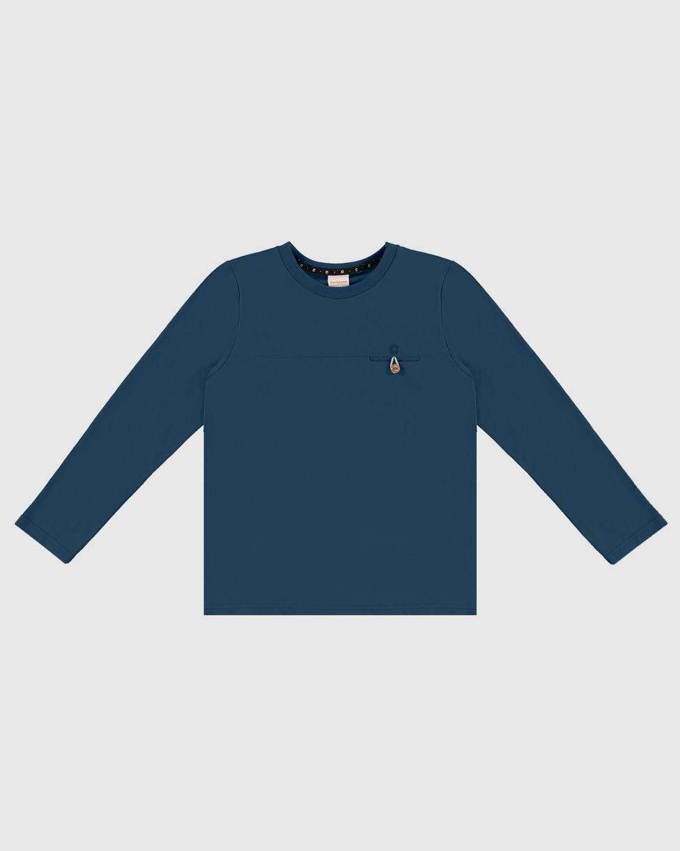 Camiseta Menino Manga Longa Bolso Frontal Em Algodão - Carinhoso