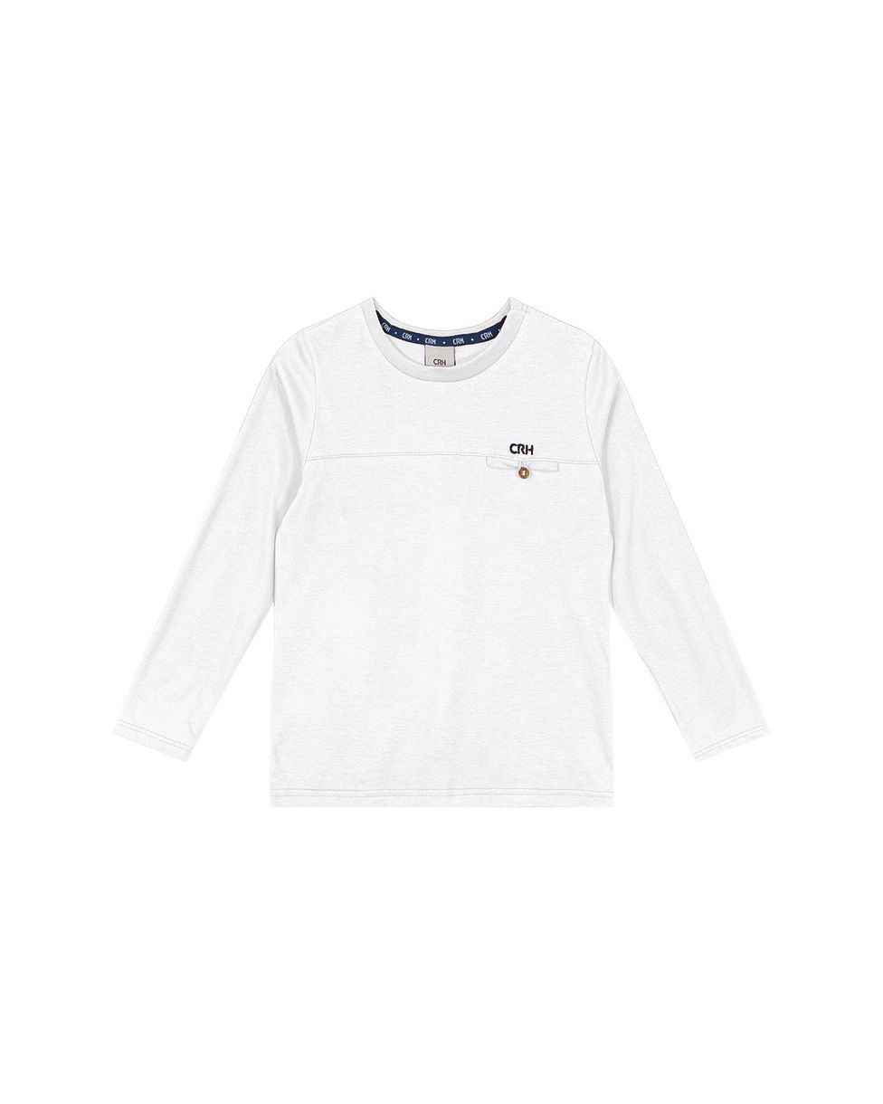 Camiseta confeccionada em malha de algodão. Um modelo basico mas com muito estilo para compor os looks dos pequenos, essa camiseta com modelagem Tradicional, conta com decote redondo, mangas longas, bordado no peitoral e recorte com bolso embutido com fecho por botão de madeira. Além disso, ela foi feita em malha de algodão, com toque suave garantindo conforto e muita versatilidade de uso no dia a dia. Ideal para combinar com jeans Carinhoso e tênis!