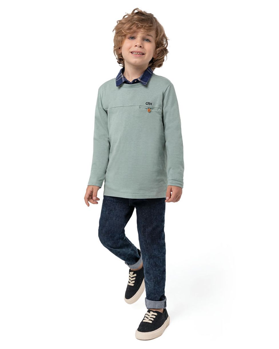 Camiseta Menino Manga Longa E Bolso Embutido Em Algodão Carinhoso